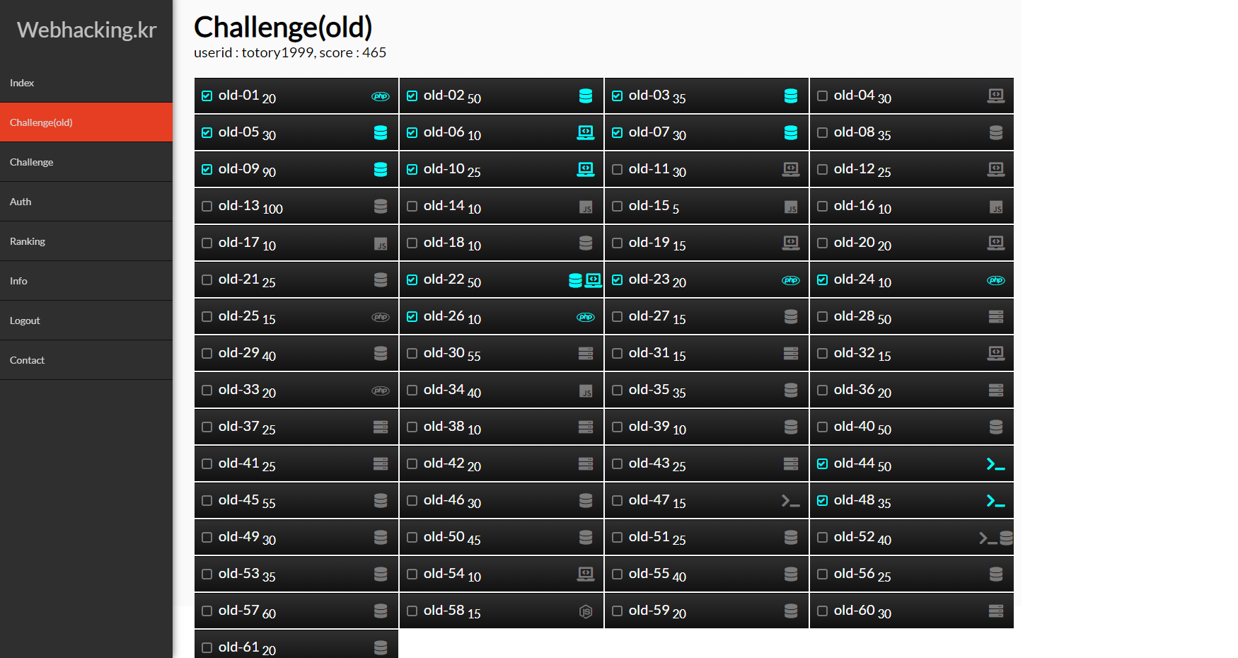 이곳에는 웹해킹 관련 문제를 올려놓고 CTF형식으로 공부를 할 수 있게 만들어놓았다.
