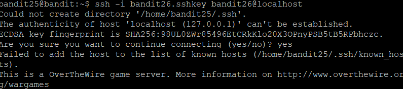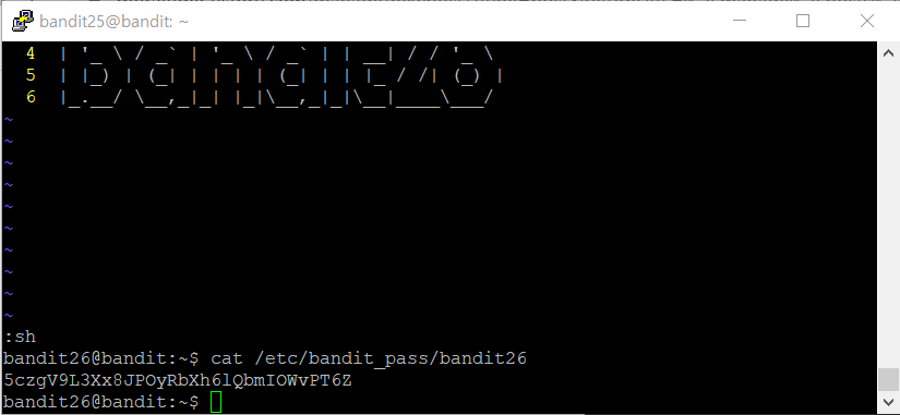 이렇게 해주면 bandit26으로 접속할 수 있습니다.