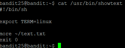 저파일을 읽어보니 more 명령어로 text.txt 파일 ->bandit26 로그인화면 (그림)등을