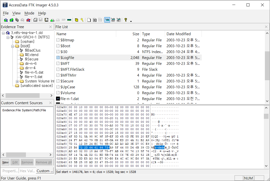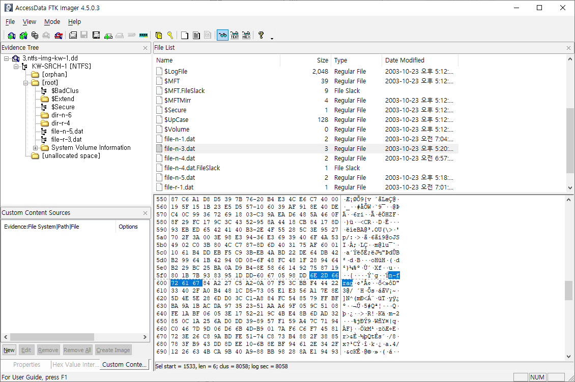 삭제되어서 파일 이름이 없고 clus값으로 file-n-2.dat과 file-n-3.dat 사이의 값을 찾아 확인하였습니다.