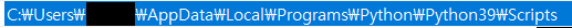 C:\Users\(username)\AppData\Local\Programs\Python\Python39\Scripts