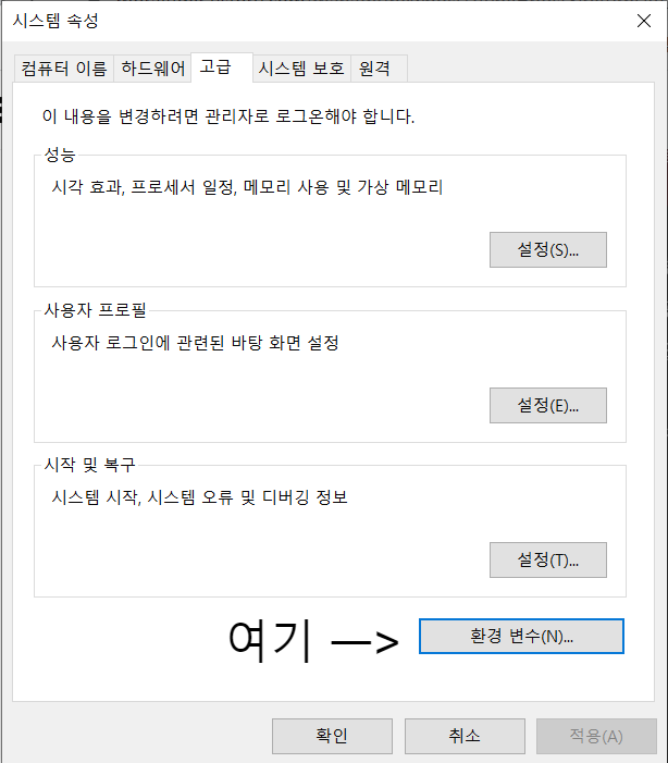 환경변수를 눌러줍시다.