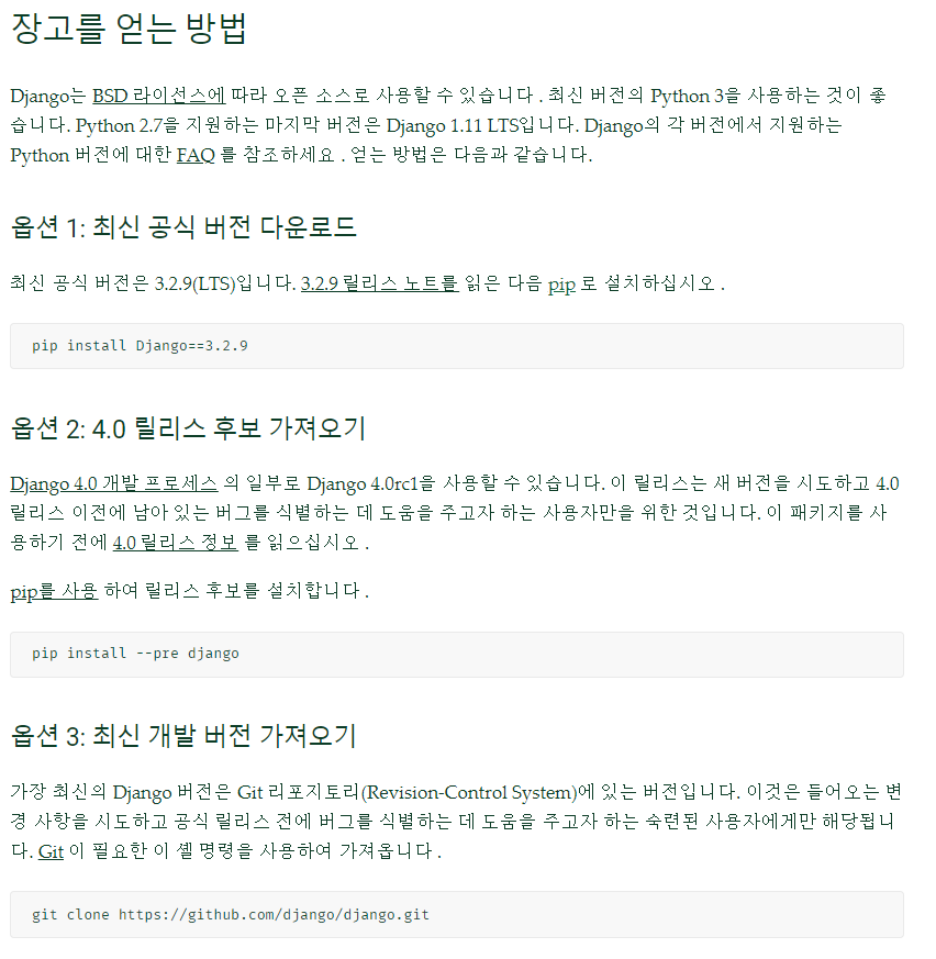 장고(Django)를 얻는 방법은 크게 2가지입니다